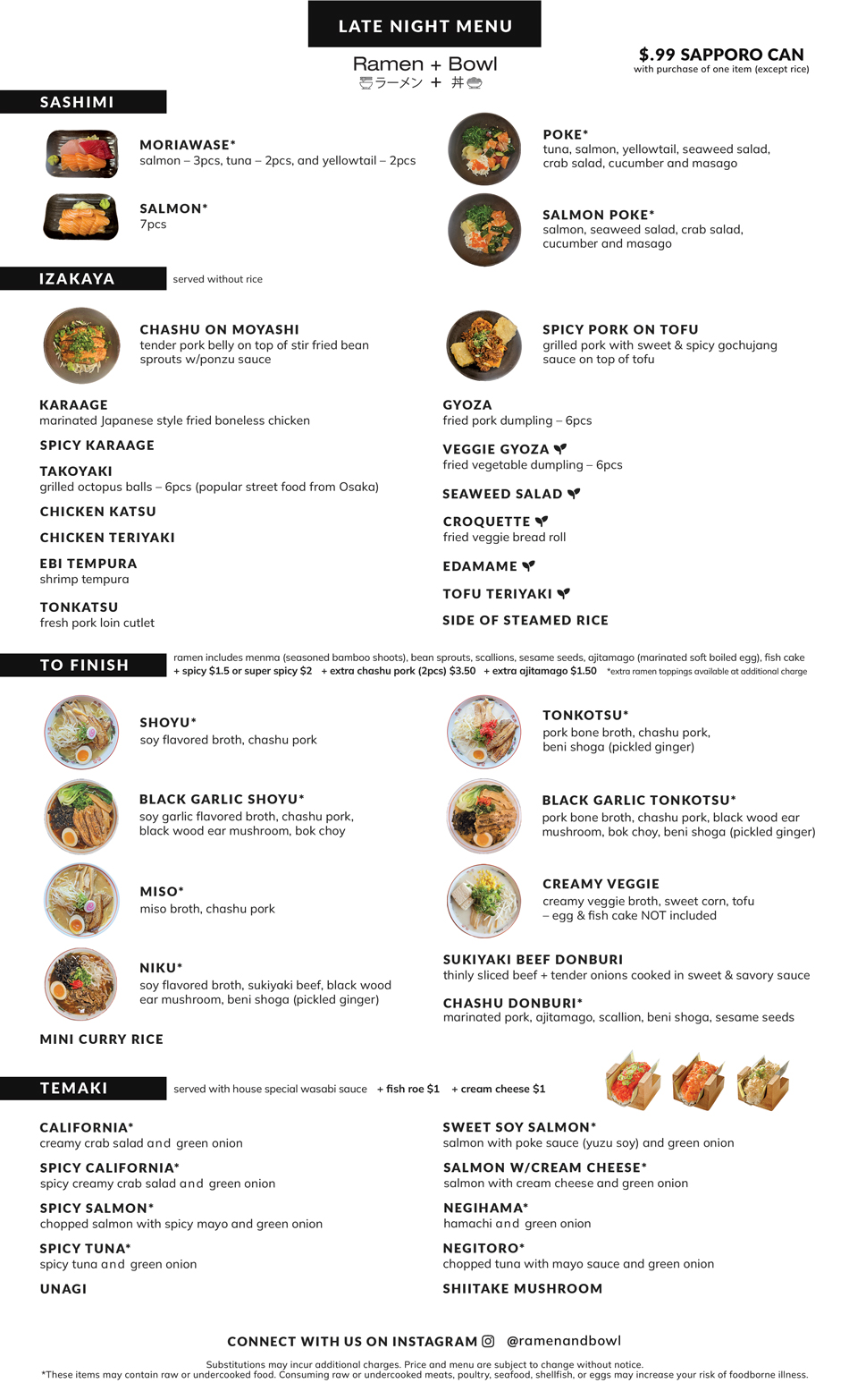 Late Night Menu After 9pm Friday & Saturday